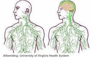 De gedachte is altijd geweest dat ons centrale zenuwstelsel zijn eigen afweermechanismen heeft. Het ‘contact’ met de rest van het lichaam zou uitsluitend via de bloed-hersenbarrière verlopen, die als strenge poortwachter de uitwisseling van onder meer voedingsstoffen en zuurstof bewaakt. Maar naar nu blijkt, is het centrale zenuwstelsel wel degelijk gekoppeld aan óók het lymfestelsel.